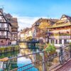 4η μέρα: Στρασβούργο-Αλσατικός Δρόμος του Κρασιού, Εγκισέμ, Κολμάρ, Ρικβίρ-Στρασβούργο. Η σημερινή μέρα είναι αφιερωμένη στον Αλσατικό Δρόμο του Κρασιού, μια διαδρομή που ακολουθεί τους πρόποδες των Βοσγίων και συναντά ιστορικές πόλεις και χωριά με λιθόστρωτα δρομάκια, πολύχρωμα μεσαιωνικά σπίτια και αναγεννησιακά σιντριβάνια. Πρωινή αναχώρηση για την “πρωτεύουσα της Αλσατικής οινοπαραγωγής”, το γοητευτικό Κολμάρ(Colmar), μία από τις ομορφότερες πόλεις της Γαλλίας αλλά και ολόκληρης της Ευρώπης, με πλούσια μεσαιωνική και αναγεννησιακή αρχιτεκτονική. Αφού περιηγηθούμε στο πεζοδρομημένο κέντρο της και θαυμάσουμε τα χαρακτηριστικά ιστορικά της κτίρια, θα φθάσουμε μέχρι την περιοχή που αποκαλείται “Μικρή Βενετία”, την περιοχή δηλαδή με τα κανάλια του ποταμού Lauch, που ξεχωρίζει για τη γραφικότητα και την ιδιαίτερη ατμόσφαιρά της. Στη συνέχεια θα αναχωρήσουμε για το “χωριό των αμπελουργών”, το Ρικβίρ (Riquewihr), φωλιασμένο πίσω από τα μεσαιωνικά του τείχη που μοιάζουν ανέπαφα στο πέρασμα των αιώνων, καθώς και το γραφικό χωριό Εγκισέμ (Eguisheim), γνωστό για τα πέτρινα σοκάκια του σε ομόκεντρους κύκλους και για το υπέροχο κρασί του. Το Ρικβίρ, όπως και το Εγκισέμ, θεωρούνται από τα ωραιότερα χωριά της Γαλλίας και περιλαμβάνονται στον κατάλογο “Les PlusBeaux Villages de France”. Επιστροφή στο Στρασβούργο. Διανυκτέρευση.