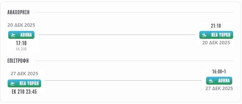1η ημέρα: Αθήνα – Νέα Υόρκη (και από Θεσσαλονίκη/Κρήτη/Κύπρο)